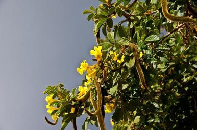 Keywords: seed pods blossom flowers yellow furry tree australia garden