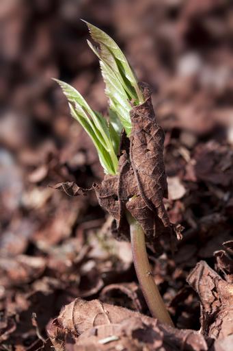 Keywords: seedling germ leaves wildling plug seeds leaves dead plant live new green brown close macro spring lenz giersch aegopodium podagraria wild vegetables