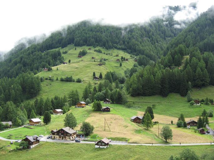 Keywords: seefeld switzerland mountain valley farmers meadow homes home green forest brown plant tree wood