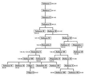 Keywords: Seleucidas.gif es Árbol genealógico de los reyes seleúcidas own Nachoseli 2009-02-28 Genealogy Helenística