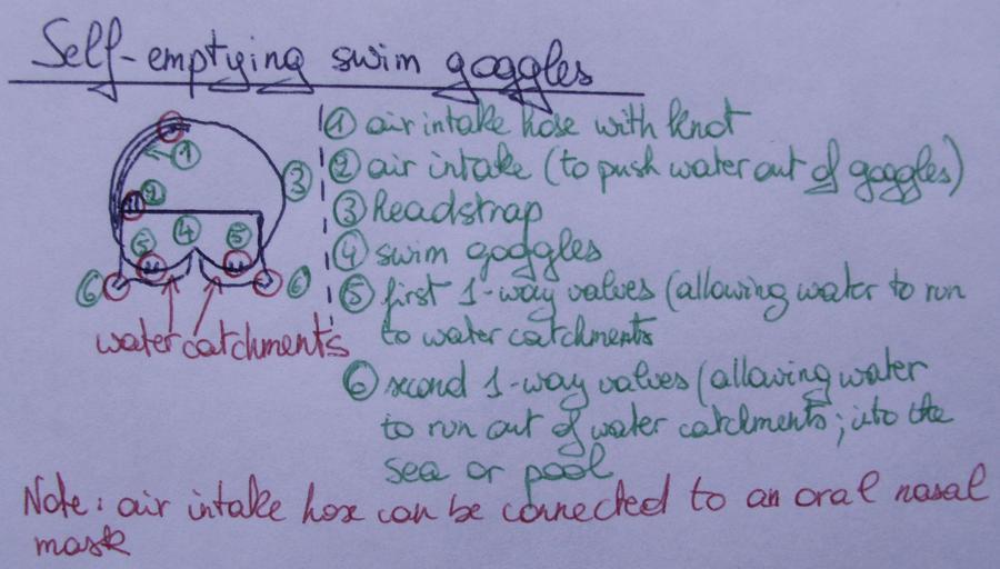 MAKE A MEME View Large Image Self-emptying swim goggles.JPG en A schematic of a self-emptying swim goggles Self-emptying swim goggles could be used in situations when a person suddenly finds himself under water without a swim goggles on In this situation the goggles ...