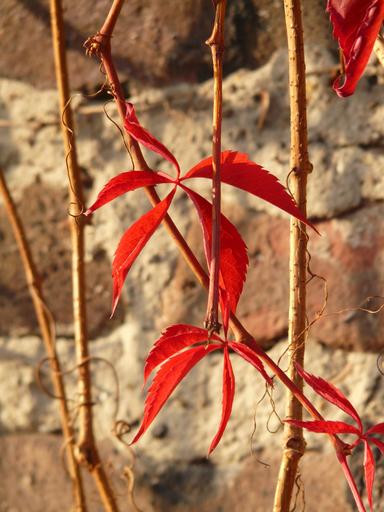 Keywords: self kletternde jungfernrebe parthenocissus quinquefolia wine partner grape crop vitaceae vine leaves wall brick grapevine ranke fouling coloring red autumn leaves fall foliage wild grape vine vitis vinifera