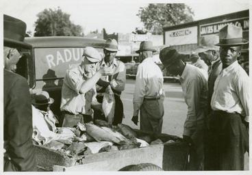 | Keywords: new york public library newyorkpubliclibrary dc:identifier=http://digitalgallery.nypl.org/nypldigital/id?1260038 dc:identifier=httpdigitalgallerynyplorgnypldigitalid1260038 xmlns:dc=http://purl.org/dc/elements/1.1/ xmlns:dc=httppurlorgdcelements11 dc:coverage=1939 lexington miss. miss african american men africanamericanmen street vendors streetvendors fishmongers mississippi depression era depressionera Digital ID: 1260038. Selling fish on Saturday afternoon, Lexington, Holmes County, Mississippi Delta, Mississippi, November 1939.. Wolcott, Marion Post -- Photographer. November 1939   Notes:  Original negative #: 30657-M2   Source: Farm Security Administration Collection. / Mississippi. / Marion Post Wolcott. (more info)   Repository: The New York Public Library. Schomburg Center for Research in Black Culture. Photographs and Prints Division.   See more information about this image and others at NYPL Digital Gallery. Persistent URL: digitalgallery.nypl.org/nypldigital/id?1260038   Rights Info: No known copyright restrictions; may be subject to third party rights (for more information, click here) Digital ID: 1260038. Selling fish on Saturday afternoon, Lexington, Holmes County, Mississippi Delta, Mississippi, November 1939.. Wolcott, Marion Post -- Photographer. November 1939   Notes:  Original negative #: 30657-M2   Source: Farm Security Administration Collection. / Mississippi. / Marion Post Wolcott. (more info)   Repository: The New York Public Library. Schomburg Center for Research in Black Culture. Photographs and Prints Division.   See more information about this image and others at NYPL Digital Gallery. Persistent URL: digitalgallery.nypl.org/nypldigital/id?1260038   Rights Info: No known copyright restrictions; may be subject to third party rights (for more information, click here)  Digital ID: 1260038. Selling fish on Saturday afternoon, Lexington, Holmes County, Mississippi Delta, Mississippi, November 1939.. Wolcott, Marion Post -- Photographer. November 1939