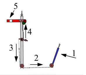 Keywords: Señal de ferrocarril de Argentina.jpg es Es una imagen de una señal ferroviaria del tipo que indica peligro y obliga al tren a parar y le prohÃbe rebasarla Esta hecha con todas las partes de una señal además las flechas y los números indica la dirección que realizan los cables transmisores 1 Transmisión de la palanca en la cabina de señales al accional a vÃa libre el cable se dirige hacia la palanca 2 Cable y/o cadena que transmite de la palanca a la polea del poste de la señal 3 Cadena que transmite de la polea del poste al contrapeso va hacia la misma dirección que lo anterior 4 Eje transmisor que trasmite del contrapeso a la señal Este dispositivo tiene un contrapeso de seguridad en el caso que el cable se corte 5 La señal se baja a 45º en posición de vÃa libre Dieses Bild zeigt ein argentinisches Eisenbahnsignal mit der Anzeige Gefahr die einen Zug zum Halten zwingt und ein Anfahren verbietet Es zeigt alle Teile des Signals und außerdem nummerierte Pfeile die die Funktion der Drahtzüge erläutern 1 Bedienhebel im Stellwerk 2 Draht oder Kette die die Hebelstellung an den Signalmast übermittelt 3 Kette vom Signalmast zum Gegengewicht 4 à bertragungsachse vom Gegengewicht zum Signal Diese Einrichtung verfügt über ein Sicherheits-Gegengewicht für den Fall dass ein Drahtzug bricht 5 Das Signal senkt sich in 45°-Stellung um Fahrt anzuzeigen Tiu ĉi bildo montras argentinan fervojan semaforon de la tipo montranta danÄ eron kaj deviganta trajnon halti kaj ne ekveturi Ä i montras ĉiujn partojn de la semaforo kaj krome numeritajn sagojn kiuj ilustras la funkciadon de la drataj regiloj 1 Manipulilo en la regejo 2 Drato aŠĉeno transdonanta la manipulilan pozicion al la semafora masto 3 Ĉeno de la masto al la kontraÅpezaĵo 4 Akso transsenda de la kontraÅpezaĵo al la semaforo Tiu ĉi instalaĵo disponas kontraÅpezaĵon por la okazo de rompita drato 5 La semaforo malaltiÄ as al pozicio de 45° por permesi veturadon Fue trabajo de Gelpgim22 own Gelpgim22 2010-09-20 No por el momento Diagrams of railway signals in Argentina |