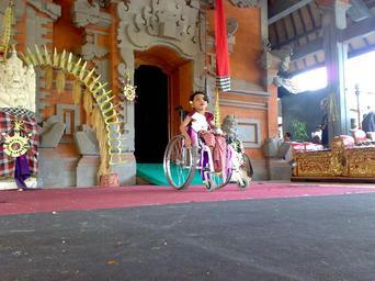 | Keywords: Senang Hati-Diah Larasati-Wayan Sukarmen.jpeg Wayan Sukarmen a member of the en Senang Hati Foundation appearing in Diah Larasati A Drama Dance Performance in en Ubud en Bali Theme is An Information Dissemination Campaign for ˜Sekolah Inklusi ™ PWDs rights to attend regular school PWD Persons With Disabilities These details from a hand-out at the event Own 2008-04-03 Jack Merridew See also http //www stichtingwins nl/Childsponsoring/Tampaksiring/I 20Wayan 20Sukarmen htm personality rights People of Ubud Senang Hati Foundation Drama Disabled people People in wheelchairs Wheelchair dance |