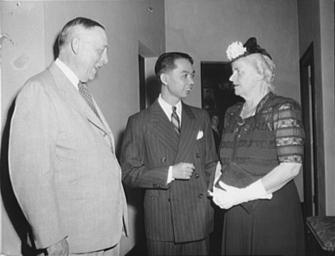| Keywords: Seni Pramoj Eldon James.jpg Washington D C - Present at an informal reception at the Thai Legation in celebration of the nineteenth birthday of King Ananda of Thailand who is currently residing in Switzerland were left to right Dr Eldon R James Foreign Affairs Advisor to the Advisor to the Thailand government from 1918-1924 Thai Minister Seni Pramoj and Mrs James LOC-image fsa 8d42622 1944-09 United States Office of War Information Overseas Picture Division Washington Division; 1944 PD-USGov Cropped to remove negative framing Wisekwai http //hdl loc gov/loc pnp/fsa 8d42622 Digital Item Display Seni Pramoj Thailand in World War II Birthday celebrations of royalty of Thailand |