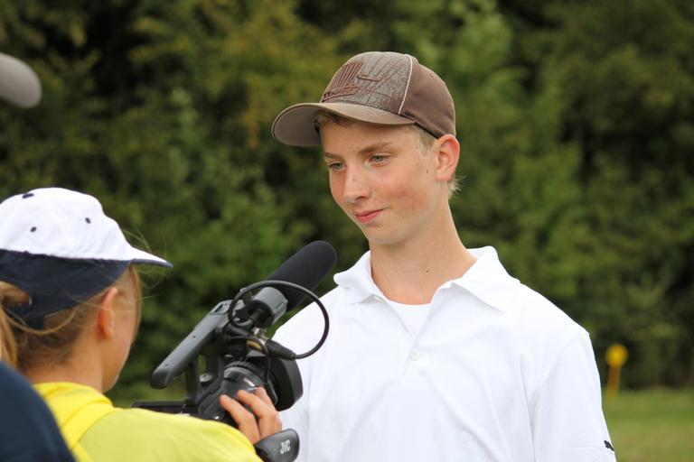 Keywords: Seppo Paju Disc Golf EC France 2010.JPG en Seppo Paju is being interviewed after winning the 2010 disc golf European Champion Under 19 own Ilkkapaju 2010-08-29 Cc-zero Disc golf