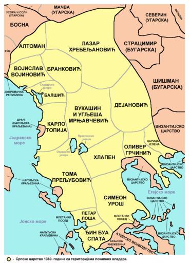 | Keywords: Serbia 1360 sr.png en Map of the Serbian Empire in 1360 with territories of local rulers sr апа С пског ца ства 1360 године са те ито ијама локалних влада а own PANONIAN 2014 Cc-zero References Made according to this source The Times History of Europe Times Books London 2002 pages 98-99 here is online version of map from that book http //www dodaj rs/f/1x/d4/2XMzmj5g/balkans1360 jpg Maps of the Serbian Empire Stefan Uroš V Lazar of Serbia House of Branković Balšić noble family Mrnjavčević noble family Dejan magnate Jovan Oliver Simeon Siniša Serbia in the 14th century Maps in Serbian |