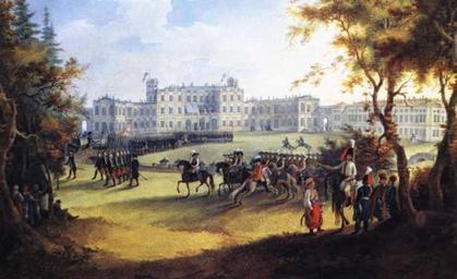 Keywords: Sergeev. Military parade.jpg Artwork Creator Gabriel Sergeev ru Военный па ад на дво цовой площади около Большого Гатчинского дво ца en The en Gatchina palace of en Count Orlov 18th-cent watercolour 1798 watercolor object history credit line accession number http //allross ru/lenobl/gatchina/his htm User Art-top/Upload art works PD-old-100 Gatchina Park in art 1798 watercolor paintings Gabriel Sergeev Southern facade of the Gatchina Palace Parades in Russia |