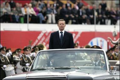 | Keywords: Sergei Ivanov g8o2613-398h.jpg Russian Defense Minister Sergei Ivanov surveys troops during a military parade commemorating the 60th anniversary of the end of World War II in Moscow's Red Square Monday May 9 2005 White House photo by Eric Draper Source http //www whitehouse gov/infocus/europe/2005/may/photoessay3/08 html PD-USGov Photographs by Eric Draper 2005 Moscow Victory Day Parade Sergei Ivanov | ||||