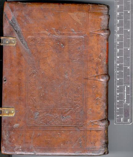 Keywords: Sermones quadragesimales - Lower cover (c66e6).jpg Style Panel design Religious miscellaneous; Caption Lower cover; Colour Brown; Edge Unspecified exhibition history Decorative Technique Panel stamp in blind Tooled in blind; Cover Material Calf Wooden boards Traces of 2 pairs of clasps But Macchi states; c 1498-1515 Normandy Robert or Richard Macé Annunciation panel-stamp 6 known examples D Gid- M -P Laffitte Les reliures à plaques françaises p 39-40 28 n 1 ; Virgin's coronation panel-stamp 6 known examples D Gid- M -P Laffitte Les reliures à plaques françaises p 92-93 64 n 1 object history Text 1506; Lyons; Unspecified object type Cc-zero place of creation Binding England place of discovery See J B Oldham Blind Panels of English Binders Cambridge 1958 Bib see upper cover British Library image http //www bl uk/catalogues/bookbindings/LargeImage aspx RecordId 020-000002668 ImageId ImageId 40939 Copyright BL Sermones quadragesimales Uploaded with GWToolset Sermones quadragesimales - Lower cover c66e6 http //www webarchive org uk/bldatasets/bindings/5427_3 jpg Bookbinding 16th-century bookbinding British Library Bookbindings |
