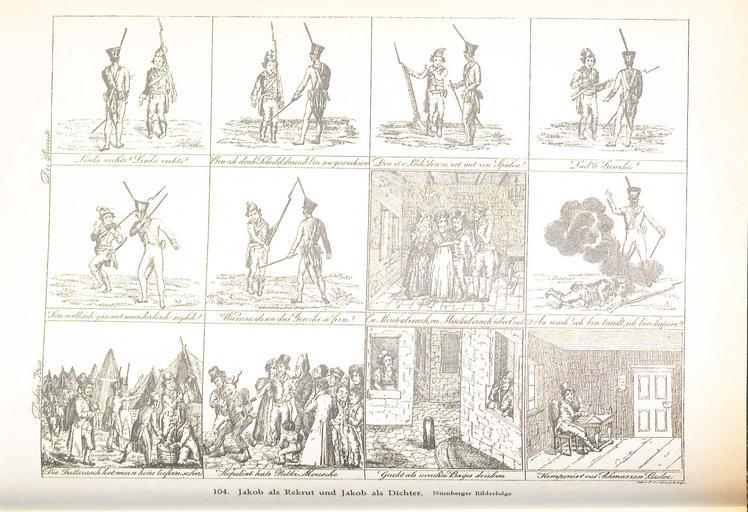 | Keywords: Sessa Unser Verkehr 60.jpg de Jakob als Rekrut und Jakob als Dichter' Nürnberger Bilderfolge Bei Eduard Fuchs ohne genaueren Nachweis Jakobs Kriegstaten ist eine Posse von de Karl Borromäus Alexander Sessa die postum veröffentlicht nach 1815 erfolgreich in deutschen Theatern gespielt wurde Ihr inhalt bedient antisemitische Vorurteile 1829 Eduard Fuchs Die Juden in der Karikatur ein Beitrag zur Kulturgeschichte Nachdr d Ausg München Langen 1921 1985 S 93 author other versions Custom license marker 2015 10 11 PD-Old Karl Borromäus Alexander Sessa Uploaded with UploadWizard |