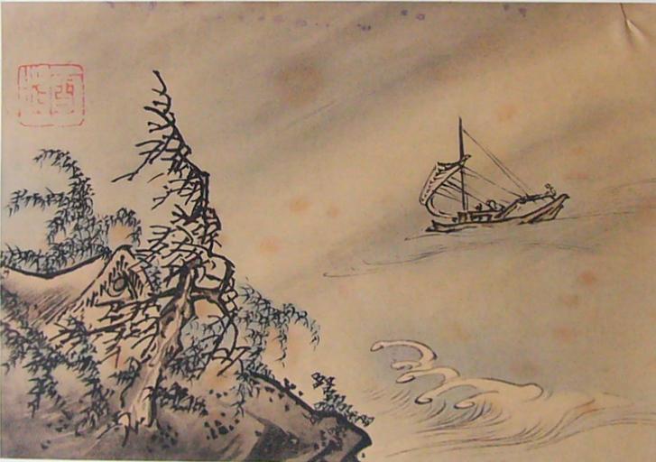| Keywords: SESSON Wind wave.jpg 雪 風濤図 版複製 紙 淡彩墨画 縦 22 2cm 幅31 4cm Wind and waves Woodblock Reproduction Hanging scroll ink and colour on paper 22 2x 31 4cm Nomura Museum Japan 鑑賞 日 名畫集 審美書院 昭和16年 Japanese Painting Anthlogy ed et publ by SINBI-SHOIN TOKYO 1941 16世 16th century 雪 1504-1589頃 SESSON 1504-ca 1589 Сэссон Сюкэй СЭССО́ СЮКЭ́Й 1504 -89 японский художник Занимался живописью тушью на п отяжении более полувека после сме ти таких великих мате ов как Сэссю см СЭССЮ Секэй см СЕКЭЙ и Соами PD-Art Paintings of the Muromachi period Paintings from Japan Sesson Shūkei Taken with Panasonic Lumix DMC-FZ2 |