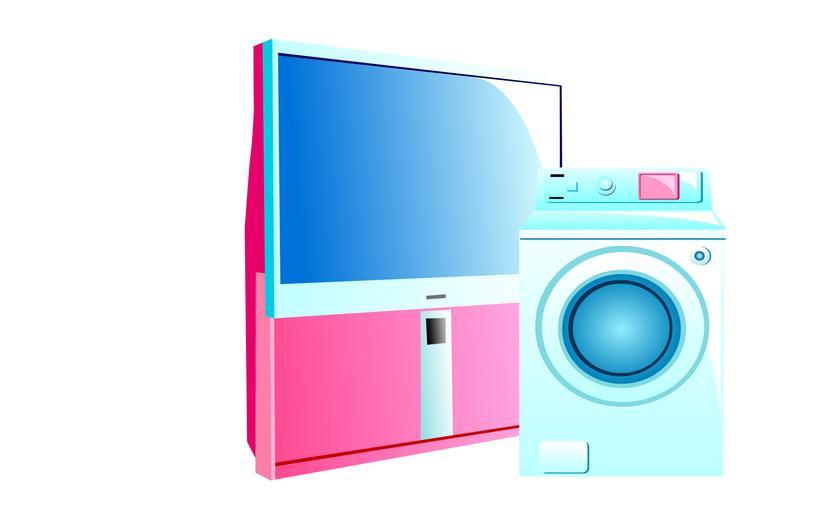 Keywords: vector household icon tv white background kitchen washer brown set hood cold meal chrome appliances steel nobody green maker tool housework power life freezer stove clean plasma dishwasher computer equipment buttons