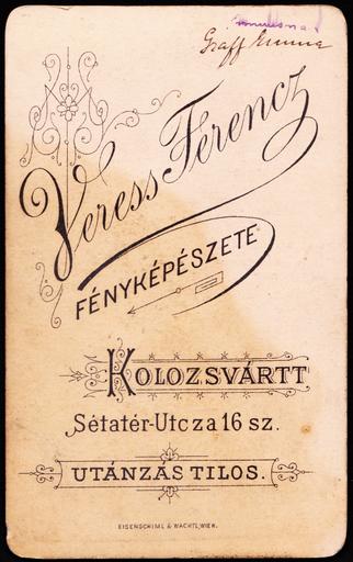 | Keywords: Sétatér utca 16., Veress Ferenc fényképészete. Fortepan 81415.jpg Check categories 2016 August 28 hu Sétatér utca 16 Veress Ferenc fényképészete Location Romania Transylvania Cluj-Napoca Tags verso photographer studio Title Sétatér utca 16 Veress Ferenc fényképészete http //www fortepan hu/_photo/download/fortepan_81415 jpg 1900 Fortepan 81415 http //www fortepan hu/_photo/download/fortepan_81415 jpg http //www fortepan hu/ lang en img 81415 Unknown The release at fortepan hu is CC-BY-SA-3 0 As the photographer is unknown or pseudonymous and the photograph is Age 1900 01 01 years old it is considered public domain both in the country of publication Hungary and the USA where Wikimedia Commons is hosted See Fortepan HU for more information on related uploads PD-anon-70-EU PD-1923 PD-1923 DEFAULTSORT Fortepan 081415 1900 photographs Images uploaded by Fæ |