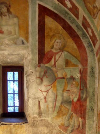 Keywords: Settimo Vittone Pieve San Lorenzo Martino.jpg Unknown painter St Martin of Tours fresco 1460-80 Pieve di San Lorenzo; Settimo Vittone Turin Italy own 4-11-2007 Laurom Pieve di San Lorenzo Settimo Vittone