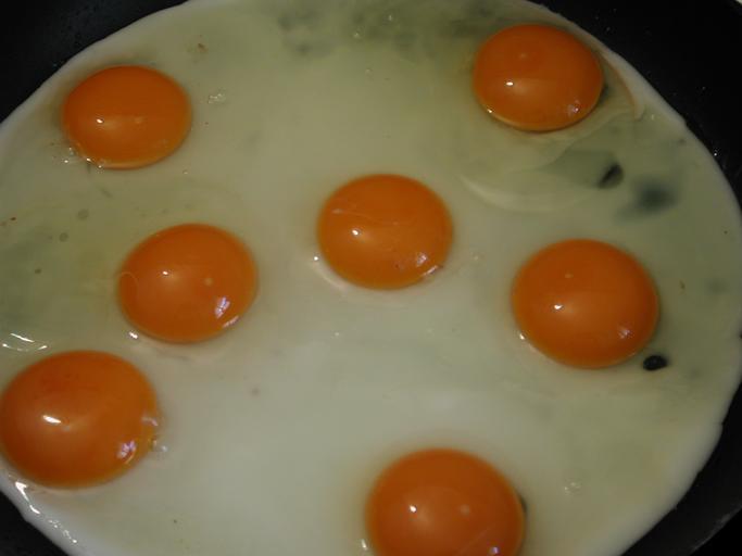 Keywords: Seven eggs being fried.jpg Seven eggs being fried sunny side up in a frying pan Own 2007-01-31 Pseudopanax at http //en wikipedia org en wikipedia Fried eggs White and yellow Eggs Egg white Egg yolk 7 number