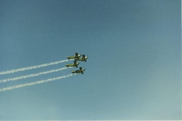 Keywords: best of sdasm bestofsdasm outdoor Catalog #: SF-26 Notes: October 4, 1987 - El Paso, TX The Holiday Inn Aerobatic Team performs at the Amigo Air Show in Pitts S-1 airplanes. Repository: San Diego Air and Space Museum Archive Catalog #: SF-26 Notes: October 4, 1987 - El Paso, TX The Holiday Inn Aerobatic Team performs at the Amigo Air Show in Pitts S-1 airplanes. Repository: San Diego Air and Space Museum Archive |