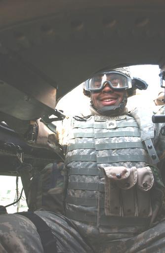 | Keywords: Sgt. Marion Cambell DVIDS13767.jpg en CAMP LIBERTY IRAQ -- Sgt Marion Cambell a military police Soldier from Peoria Ill with the 1/10th Mountain Division's Brigade Special Troops Battalion smiles after completing a mission on Iraqi election day Dec 15 With the new modular Brigade Combat Team concept MPs are assigned to Army brigades assigned to BSTBs The BSTB MPs' main missions in Iraq are convoy security route security and facilitating detainee transfers U S Army Photo by Spc Emily Wilsoncroft 3rd Infantry Divison Public Affairs 2005-12-15 Spc Emily Wilsoncroft https //www dvidshub net/image/13767 13767 2005-12-21 09 31 BAGHDAD IQ PD-USGov Camp Liberty Images from DoD uploaded by Fæ |