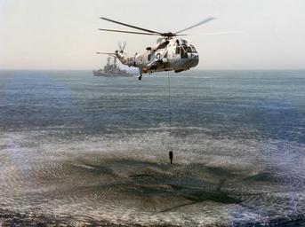 | Keywords: SH-3H Sea King of HS-6 lowering sonar c1977.jpg A U S Navy Sikorsky SH-3H Sea King of Helicopter Ant-Submarine Squadron HS-6 Indians out of Naval Air Station North Island California USA is shown lowering its AQS-13 sonar into the water HS-6 was assigned to Carrier Air Wing 9 CVW-9 aboard the aircraft carrier USS Constellation CV-64 The guided missile destroyer USS John S McCain DDG-36 is visible in the background http //collections naval aviation museum/emuwebdoncoms/pages/doncoms/AdvQuery php U S Navy National Museum of Naval Aviation photo No http //collections naval aviation museum/emuwebdoncoms/pages/doncoms/Display php irn 58813 QueryPage 2Femuwebdoncoms 2Fpages 2Fdoncoms 2FAdvQuery php 2011 003 323 020 ca 1977 U S Navy PD-USGov-Military-Navy SH-3H Sea King Helicopter Anti-Submarine Squadron 6 United States Navy AN/AQS-13 USS John S McCain DDG-36 |