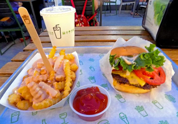 | Keywords: shake shack shakeshack shackburger cheese fries cheesefries ketchup soda indoor meal food Burgers in Real Life: Shackburger with onions and pickles. Unlike many competitors there is a "middle" to the patty. So there are several different layers of meat flavor. Many other thinner burgers are all surface area and crust. Biggest downside? The bun. Spongy and average. Burgers in Real Life: Shackburger with onions and pickles. Unlike many competitors there is a "middle" to the patty. So there are several different layers of meat flavor. Many other thinner burgers are all surface area and crust. Biggest downside? The bun. Spongy and average. |