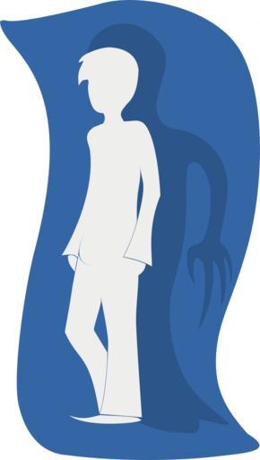Keywords: shadow silhouette evil child boy male cartoon person blue side view