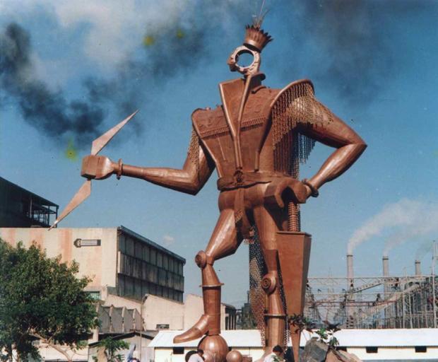 Keywords: Shaktiman (powerfull) in Nashik.jpg en The sculpture Powerful which is named as Shaktiman in Marathi language by great Marathi poet Kusumagraj alias Tatyasaheb Shirwadkar was the Guinness Record as the heaviest tallest scrap metal sculpture It was accepted in 1991 and was in the book of record till 1999 in all editions Powerful was commissioned by the national thermal power station at Nashik and installed at the main entrance gate It took eight months to complete the job The Powerful was created by Dr Sudhir Deshpande a local sculptor living and working in Nashik India own Dr Sudhir Deshpande created this sculpture and this file The author created this artwork - sculpture 1989 - 1990 Cc-zero Statues in Maharashtra Nashik |