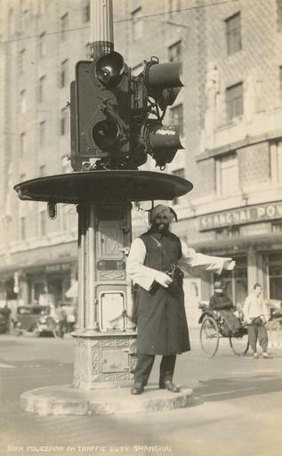 Keywords: Shanghai Sikh 1935.jpg en Sikh policeman directing traffic inside Shanghai's International Settlement c 1935 1935 eBay com Photo postcard c 1935 Shanghai other versions PD-old-70 Uploaded with UploadWizard Shanghai International Settlement
