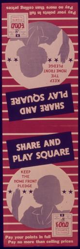 | Keywords: SHARE AND PLAY SQUARE. KEEP THE HOME FRONT PLEDGE. PAY YOUR POINTS IN FULL. PAY NO MORE THAN CEILING PRICES. - NARA - 515393.tif Scope and content General notes 515393 Local identifier 44-PA-1722A Office for Emergency Management Office of War Information Domestic Operations Branch Bureau of Special Services 03/09/1943 - 09/15/1945 Still Picture Records Section Special Media Archives Services Division NWCS-S National Archives at College Park 8601 Adelphi Road College Park MD 20740-6001 1941 - 1945 Record group Record Group 44 Records of the Office of Government Reports 1932 - 1947 Record group ARC 373 World War II Posters compiled 1942 - 1945 Series ARC 513498 File unit File unit ARC Variant control numbers NAIL Control Number NWDNS-44-PA-1722A yes Other versions <gallery> File SHARE_AND_PLAY_SQUARE _KEEP_THE_HOME_FRONT_PLEDGE _PAY_YOUR_POINTS_IN_FULL _PAY_NO_MORE_THAN_CEILING_PRICES _-_NARA_-_515393 tif tif File SHARE_AND_PLAY_SQUARE _KEEP_THE_HOME_FRONT_PLEDGE _PAY_YOUR_POINTS_IN_FULL _PAY_NO_MORE_THAN_CEILING_PRICES _-_NARA_-_515393 jpg jpg </gallery> NARA-cooperation PD-USGov World War II posters from the United States NARA TIF images with categorized JPGs |