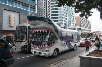 | Keywords: auckland new zealand newzealand outdoor This decorated shark-shaped bus in download Auckland advertises Kelly Tarlton's, an Antarctic-themed aquarium in Auckland. This decorated shark-shaped bus in download Auckland advertises Kelly Tarlton's, an Antarctic-themed aquarium in Auckland. |