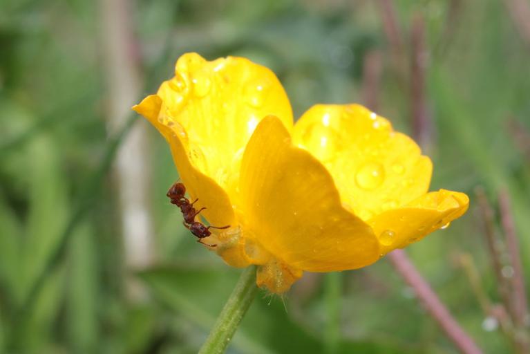 Keywords: sharp buttercup ranunculus acris buttercup pointed flower flowers bühen wet raindrop ant red garden ant red yellow node ant myrmica rubra