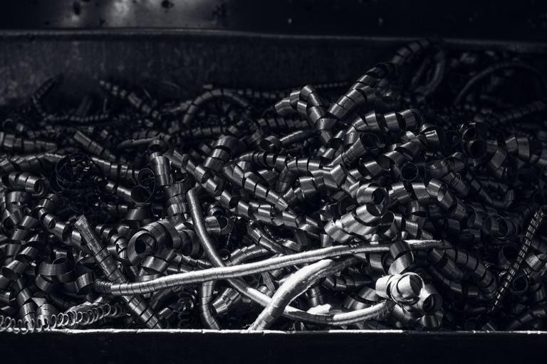Keywords: shavings metal steel plant grey black and white garbage waste light