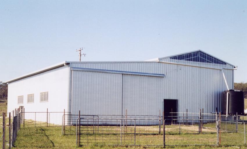 | Keywords: Shearing shed.jpg A modern Australian shearing shed with provision for shedding sheep underneath Swing or slide gates are installed to help penning up Catching pens are sloped to assist the shearers handling the sheep Own ca 1992 Cgoodwin Agriculture in the Northern Tablelands Sheep shearing Shearing sheds in Australia Sheep pens Photographs by Cgoodwin |