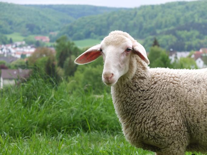 Keywords: sheep alb village mountains white animal nature green meadow landscape grass forest