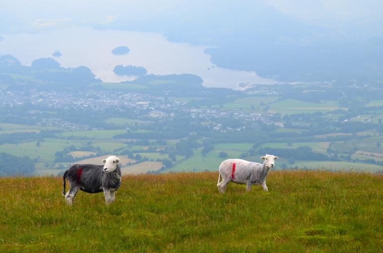 Keywords: sheep grazing views mountain the nature of the animals the lake district cumbria england