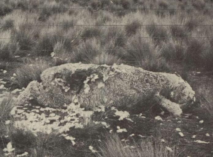 | Keywords: Sheep killed by kea (cropped).jpg from Marriner 1907 The first dead sheep was found at the foot of the Rolleston Range about ten miles above the Rakaia Forks on a broad expanse of river-flat known at the homestead as the Top Flat The animal was a merino ram in splendid condition and from the place in which it was found it had apparently been chased by the bird or birds until it was cornered where two wire fences met and there injured The sheep was quite dead and lying on its wounded side On turning the beast over we found an ugly black-looking wound on the right loin at 11 in from the tail The hole was 5 in long by 4 in wide The wool was all torn off and the flesh was removed so that the transverse processes of lumbar vertebræ were visible Though a deep hole had been made in the flesh the birds had not reached the body-cavity nor had they injured the kidneys and from the appearance of the animal it seemed as if it had died from blood-poisoning Further up the back there were several other places where the wool had been picked We proped the sheep up in order to photograph it and on returning next day we found that the keas had evidently been at it as was shown by the wool which was scattered around the carcase Sheep_killed_by_kea jpg 2010-01-21 16 48 UTC Sheep_killed_by_kea jpg George R Marriner 1879-1910 derivative work Avenue <span class signature-talk >talk</span> Cropped further Avenue Sheep_killed_by_kea jpg PD-old-70-1923 original upload log This image is a derivative work of the following images File Sheep_killed_by_kea jpg licensed with PD-1923 PD-old 2010-01-21T16 45 56Z Avenue 1124x922 250524 Bytes <nowiki> from the article cited above The first dead sheep was found at the foot of the Rolleston Range about ten miles above the Rakaia Forks on a broad </nowiki> Uploaded with derivativeFX Nestor notabilis Predation Rams Dead sheep |