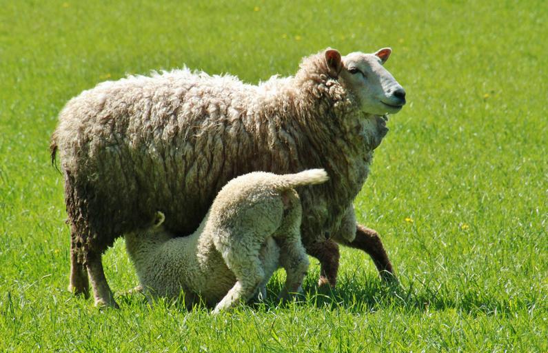 Keywords: sheep lamb lambs animals nature schäfchen animal world animal sweet drink suckle breast milk young animals sheep's wool agriculture mother and child thirsty