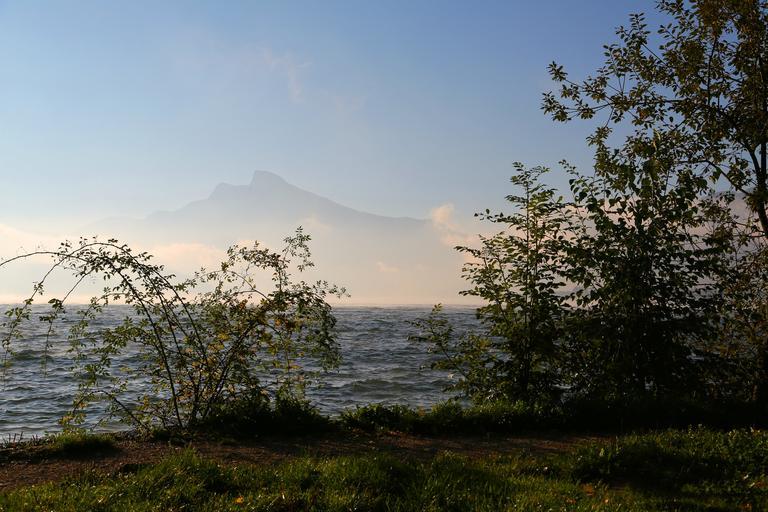 Keywords: sheep mountain mountain mondsee water wave landscape nature lake water spieglung bank mountains clouds sky rest mirroring dusk waters beach abendstimmung fog shrubs horizon sunbeam back light sunset