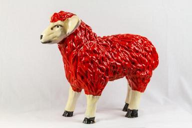 Keywords: sheep red deco gartendeko fig plastic figure ungulate