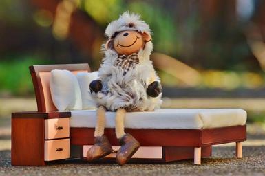 Keywords: sheep sitting bed fur relaxed fig funny sweet cute fun