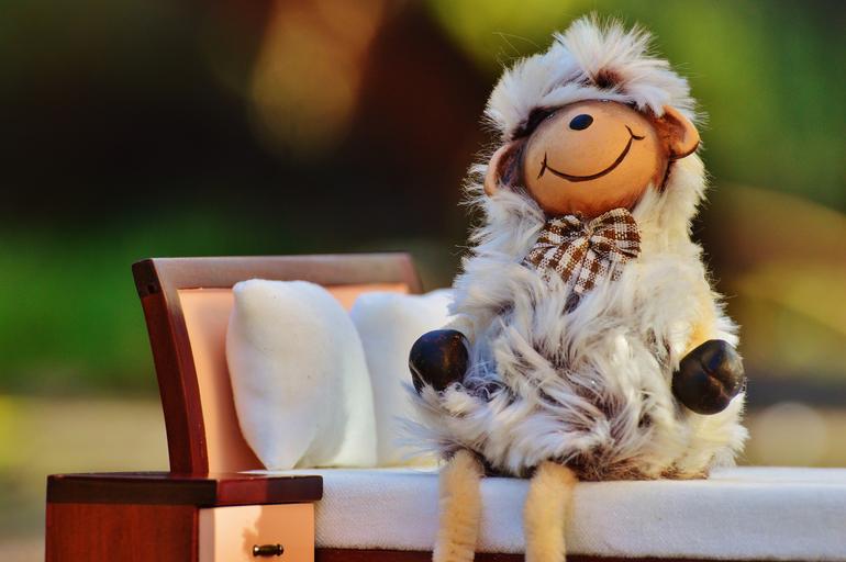 Keywords: sheep sitting bed fur relaxed fig funny sweet cute fun