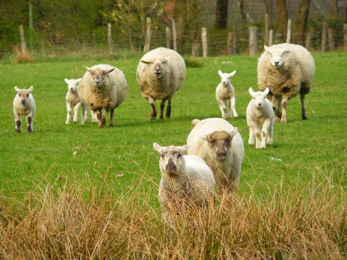 Keywords: sheep wool animal head fur soft group meadow grass landscape idyll lamb lambs schäfchen agriculture run race animal world animals nature fauna