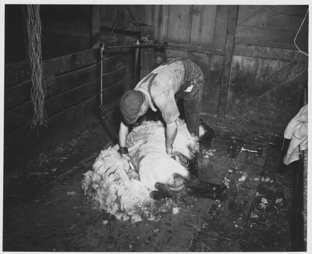 | Keywords: Shelby County, Iowa.... Detailed description, Several farmers in Irwin have a few head of sheep - 2 . . . - NARA - 522468.jpg Several farmers in Irwin have a few head of sheep -- 20 or 30 usually With wool prices rising some of them wish they had more The man doing the shearing goes from farm to farm with his own apparatus An expert at this work he shears quickly and wastes none of the wool General notes 522468 Local identifier 83-G-44299 Department of Agriculture Bureau of Agricultural Economics Division of Economic Information ca 1922 - ca 1953 Rusinow Irving Photographer 5307166 <br /> Still Picture Records Section Special Media Archives Services Division NWCS-S National Archives at College Park 8601 Adelphi Road College Park MD 20740-6001 1941 05 02 - _Several_farmers_in_Irwin_have_a_few_head_of_sheep_-_2_ _ _ _-_NARA_-_522468 jpg jpg </gallery> NARA-cooperation PD-USGov Sheep shearing People with sheep Irving Rusinow Shelby County Iowa |