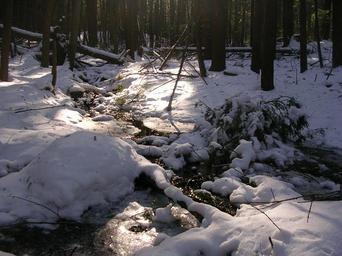 Keywords: Sheldrick Forest Stream.JPG en A stream in the Sheldrick Forest Preserve Own J Carmichael 2009-01-02 Streams in New Hampshire Snow Wilton New Hampshire