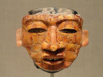 | Keywords: Shell Mosaic Ritual Mask, 300-600 AD, Teotihuacan, Mexico, stone and spondylus shell with stucco - Art Institute of Chicago - DSC00340.JPG Exhibit in the Art Institute of Chicago Chicago Illinois USA This artwork is in the public domain because the artist died more than 70 years ago Photography was permitted in the museum without restriction Daderot 2012-10-10 16 55 07 Daderot cc0 cc0 Pre-Columbian art in the Art Institute of Chicago Teotihuacan masks Maya art Mesoamerican mosaic masks | ||||
