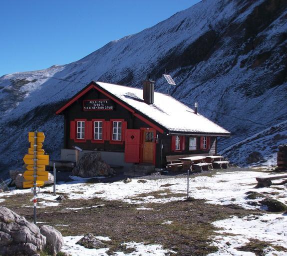 Keywords: mountains snow landscape valley ravine nature outside cabin hut architecture Shelter