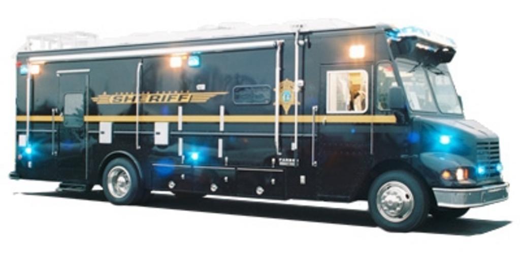 | Keywords: Sheriff MCC black with blue lights on.JPG en Faber 33' MOBILE COMMAND POST VEHICLE 33'6 Freightliner MT-55 25 500 GVWR Cummins 6 7L diesel 260 HP front engine Allison 2500 series automatic transmission 300HP engine optional Hydraulic anti-lock brakes 90 gallon tank tilt/telescopic power steering Aluminum body de Faber 11-Meter Befehlsfahrzeug https //www gsaadvantage gov/advgsa/advantage/search/search do BV_UseBVCookie Yes contract GS-30F-0008N sin 618+01 U S General Services Administration 2008 PD-USGov Vehicles of Special Weapons And Tactics SWAT Police trucks of the United States Sheriff's departments of the United States |