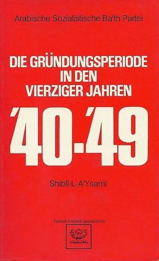 | Keywords: Shibli-L-A'Yasami ASBP-Geschichte 40-49.jpg de Titelbild von Shibli al-Aysamis Buch Arabische Sozialistische Ba'th-Partei Die Gründungsperiode in den vierziger Jahren 1940-1949 en Front cover of Shibli al-Aysami's book Arab Socialist Ba'th Party The founding period in the 1940s Iraqi Ministry for Information 1977 Shiblî-L-A'Ysamî PD-Iraq thumb left Together with a 2nd book Shibli al-Aysami Ba'athism | ||||