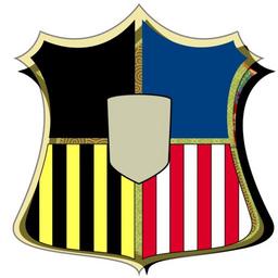 Keywords: shield coat of arms crest grey blue black stripes yellow red protection shadow sign