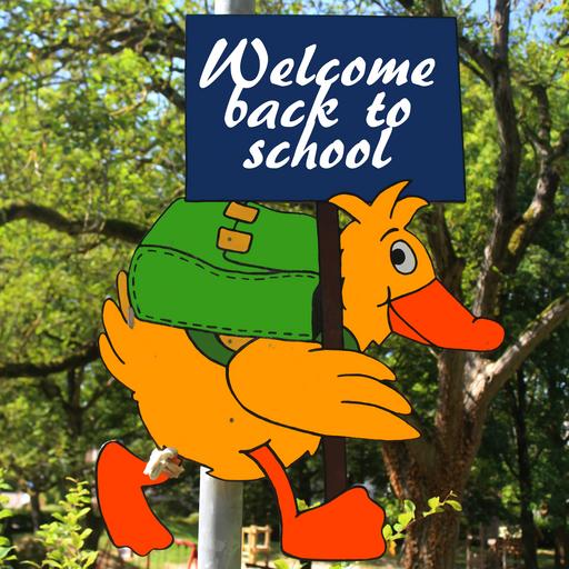Keywords: shield school back to school holidays end duck children traffic street sign child note play caution children attention warning play street sign